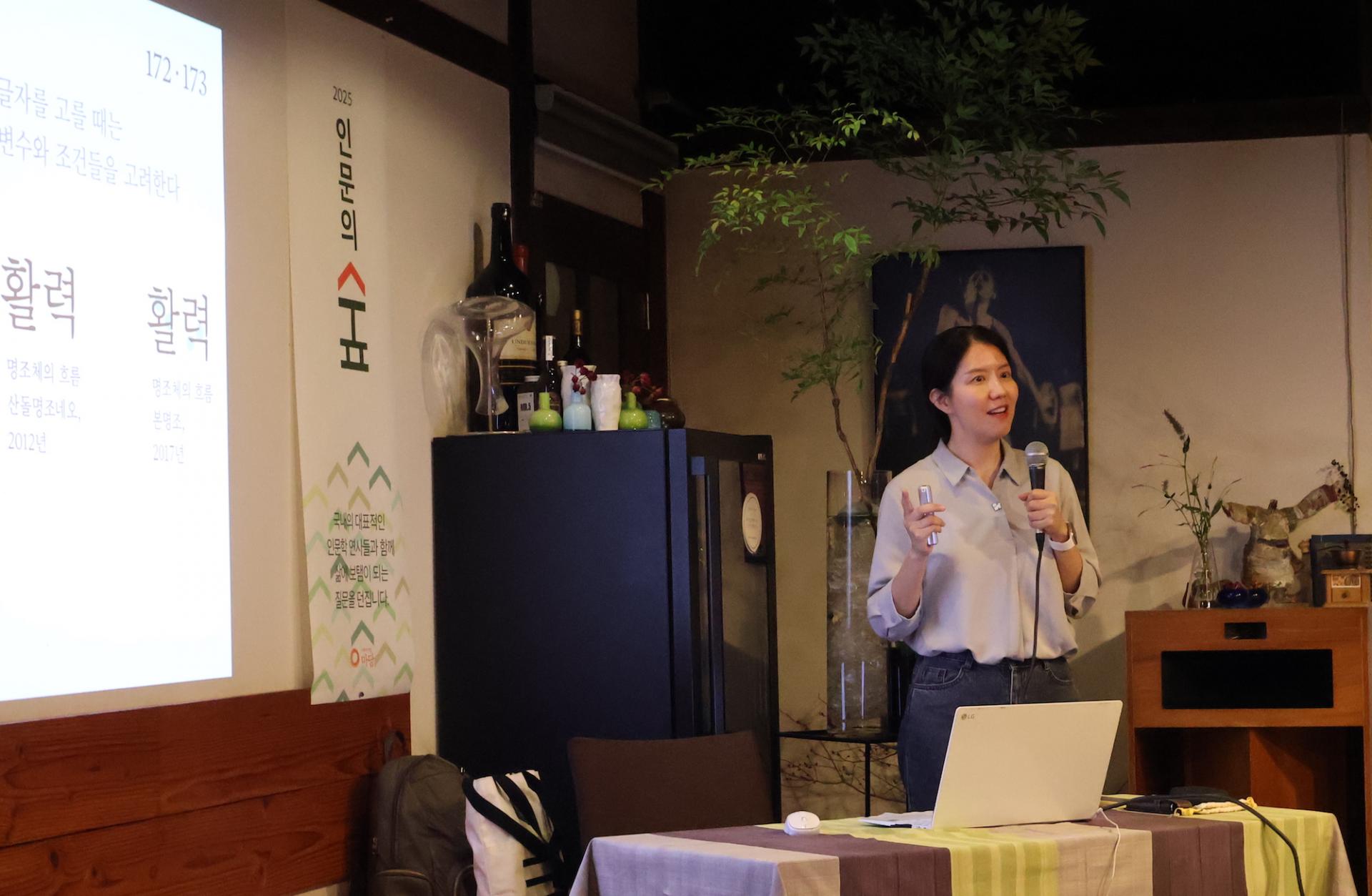 글자는 단순히 의미를 전달하는 수단이 아니다. 누군가의 삶을 비추고, 시대의 감각을 담으며, 때로는 안전까지 지켜낸다. ‘인문의 숲’ 세 번째 시간, 글자를 만들고 연구해 온 유지원 씨를 만났다. 9월 18일 저녁, 전주 한옥마을에 자리한 공간 봄에서 청중들과 글자와의 만남이 일어났다. 서예에서 시작해 한글의 역사, 그리고 현대 타이포그래피와 유니버설 디자인에 이르기까지. 글자가 어떻게 사람과 사회를 연결해 왔는지에 대해 나누었던 그 현장을 지면에 옮겨왔다.