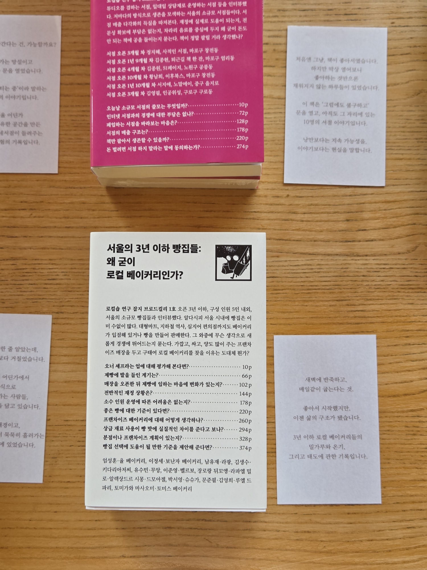 책들은 대부분 두 사람이 오랜 시간에 걸쳐 소장해온 것으로, 자연스레 두 사람의 취향이 드러난다. 와인이나 칵테일 등 술과 관련된 책은 강민 씨가, 옷이나 음악과 관련된 책은 정승 씨가 가져온 것이다. 구입만 해두고 읽지 않은 채 잊고 있던 책도 있지만, 손님이 그 책이 정말 좋았다고 얘기하며 되려 그들에게 추천을 건넨 적도 있었다고 한다.