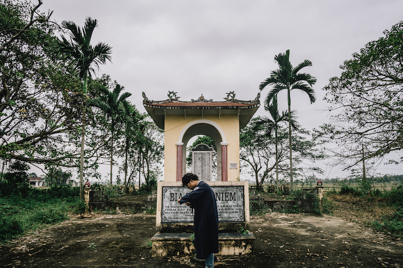 천 작가가 기록한 사적 중에는 한국군 베트남 민간인 학살을 기리는 위령비 12곳도 있다. 우리나라의 광복절로부터 며칠 뒤인 9월 2일은 베트남의 독립기념일이다. 비슷한 시기 식민 지배에서 벗어난 두 나라는 아픈 역사를 공유하고 있지만, 이후 우리는 베트남전쟁에서 가해자가 되었다. 한 위령비는 밭 한가운데 있었다. 천 작가가 위령비 앞에서 참배를 마쳤을 때, 밭에 나와있던 농부들은 그의 손을 마주 잡으며 "깜언"이라는 말을 전해왔다. 베트남어로 고맙다는 뜻이었다.