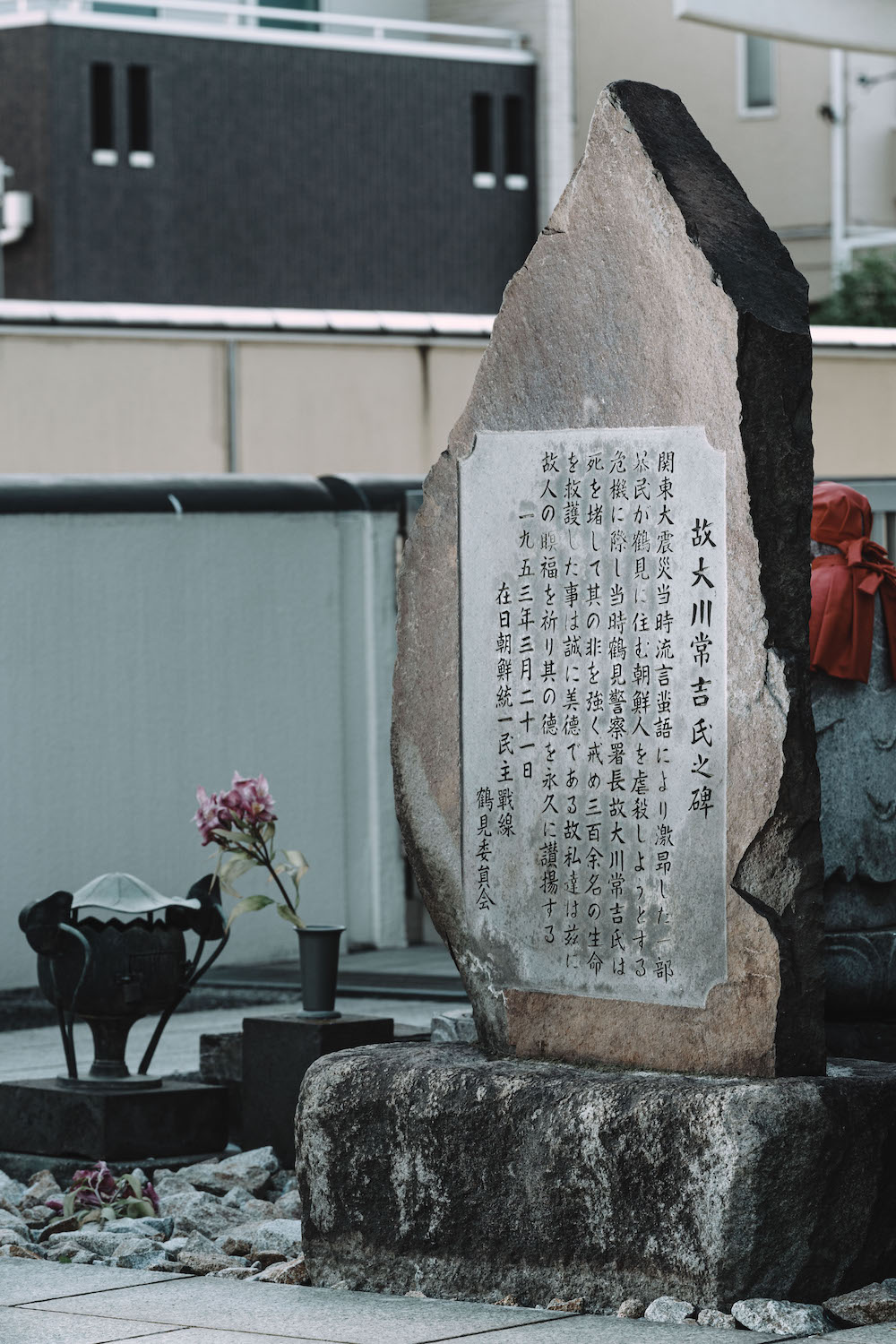 카나가와현 오카와 쓰네키치 서장 감사비. 관동대지진 당시 자경단으로부터