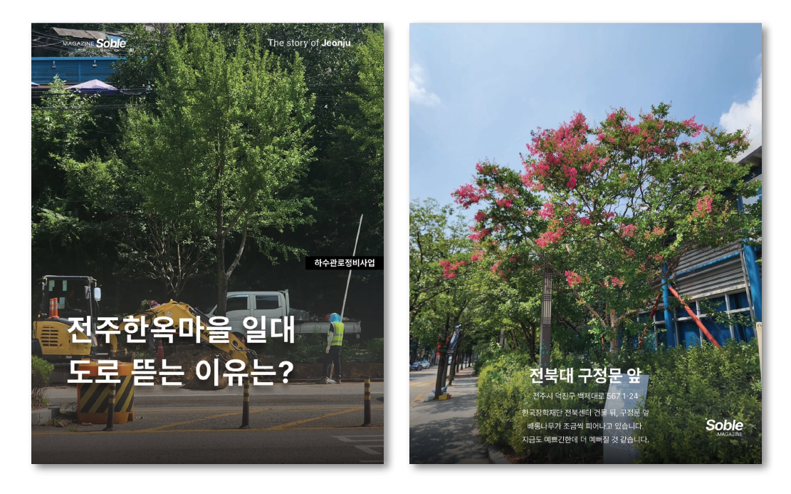 소블매거진이 특별한 점은 직접 발로 뛰며 취재한다는 것이다. 인스타그램 계정 소개란에도 ‘에디터가 가본 진짜 모습’이라는 문구가 적혀 있다. 전주의 배롱나무나 능소화 명소처럼, 직접 가지 않으면 알 수 없는 이야기를 담아낸다. 맛집과 카페 역시 기본적으로 운영자가 직접 방문해 경험한 곳들만 소개한다.