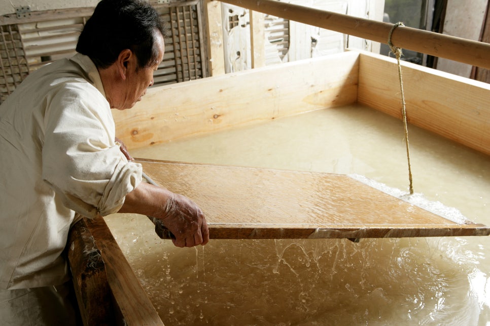 이에 더해 2023년, 故 유배근 한지발장의 별세는 전통 한지 제작의 핵심 공정에 큰 타격을 남겼다. ‘한지발’은 종이를 뜰 때 닥나무 섬유를 균일하게 걸러내는 대나무 도구로, 가늘게 쪼갠 대나무 촉을 일정한 간격으로 엮어 만든다. 한지발은 단순한 제작 도구를 넘어, 한지의 두께와 질감, 균질성을 결정짓는 핵심 요소다. 문화유산 보수용 한지를 제작할 때도 당시 사용된 발의 ‘촉수(초수)’를 맞춰야 원래 종이의 질감과 특성을 그대로 재현할 수 있다.